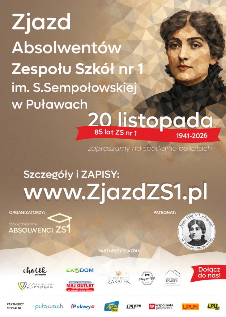 Zbliża się wyjątkowe wydarzenie dla kilku pokoleń absolwentów. Trwają zapisy na IV Zjazd Absolwentów Zespołu Szkół nr 1 im. Stefanii Sempołowskiej w Puławach, organizowany z okazji 85-lecia szkoły.
